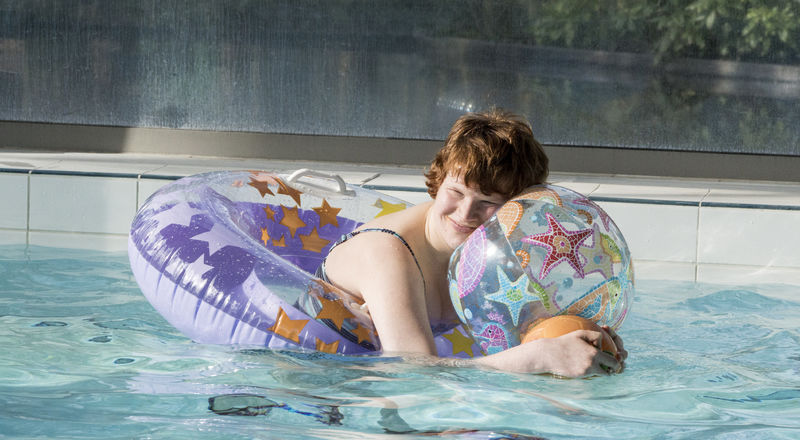 Het therapiebad op het domein Monnikenheide is gebouwd op maat van mensen met een beperking. Het water is ondiep en heerlijk warm. Je kan er zwemmen, plonsen of relaxen met zicht op de natuur en de omliggende vijverpartij.