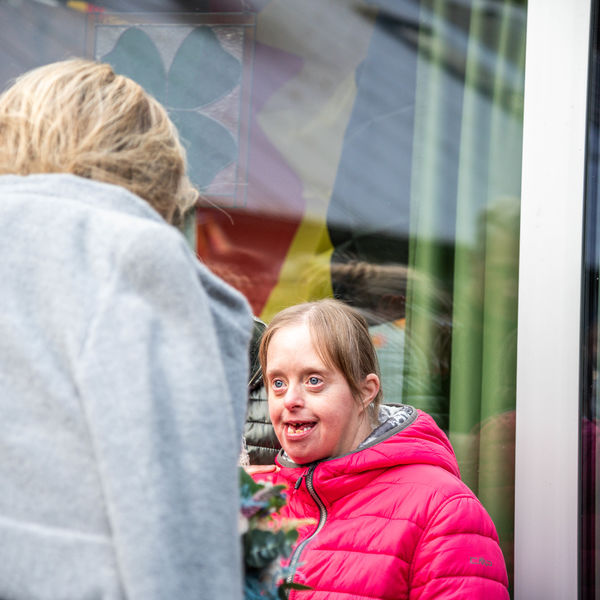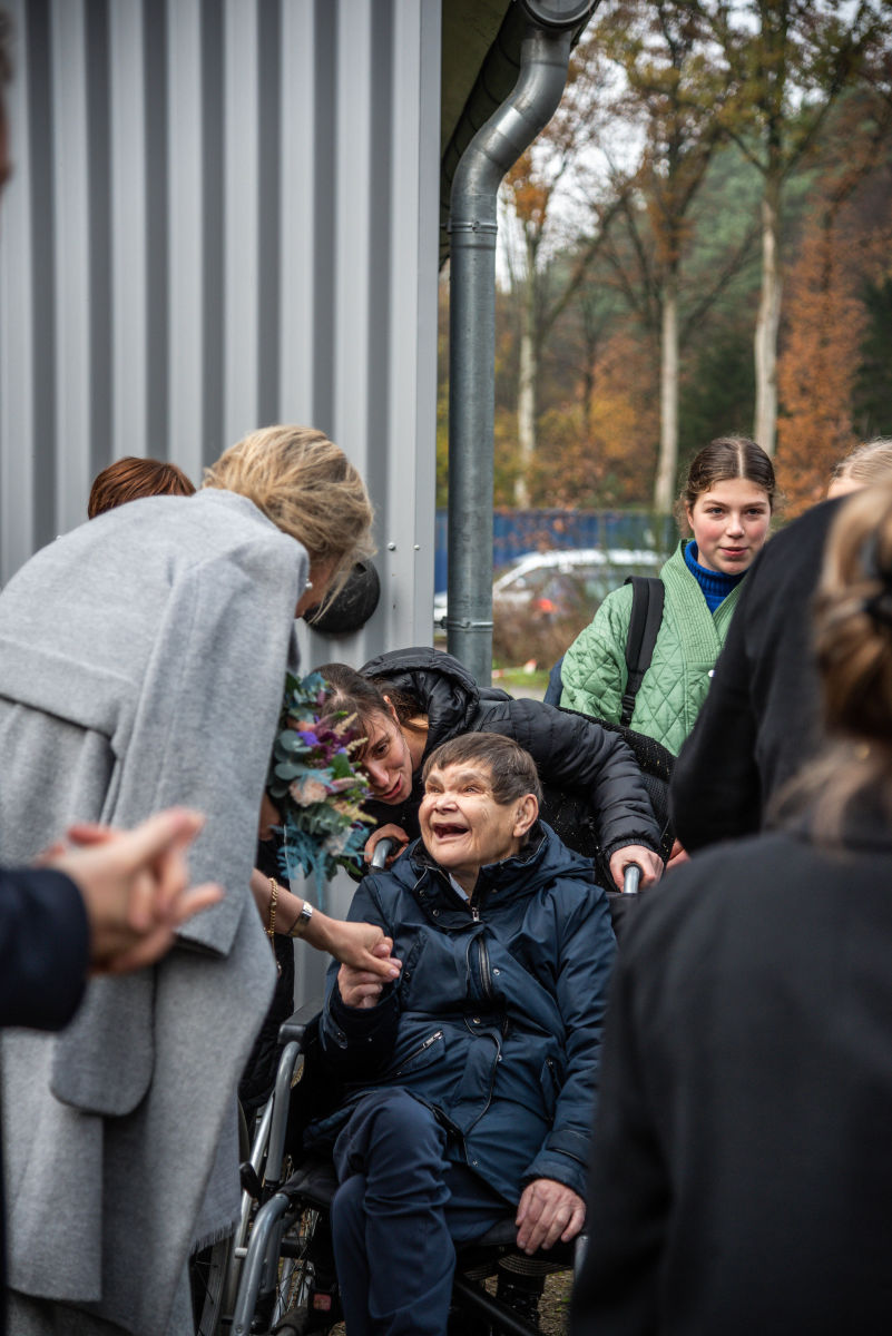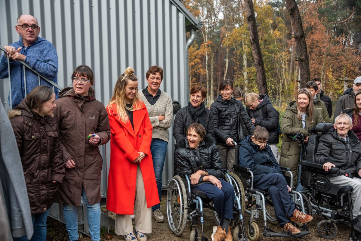 Een korte verwelkoming, en dan wandelden ze meteen naar kortverblijf de Vlinder. Niet toevallig gekozen: met een kortverblijf startte de vzw Monnikenheide in 1973, en het is nog steeds een belangrijke schakel in onze dienstverlening.