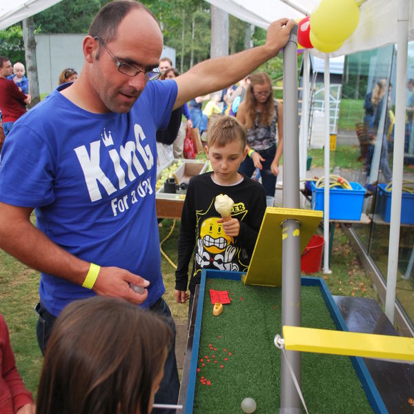Kinderen amuseerden zich op de Vlaamse kermis, de draaimolen en op de rug van Ivo. De biertent, het zoet café, de pannenkoekenbak, de ijsjeskraam en de frituur draaiden weer een hele namiddag op meer dan volle toeren.