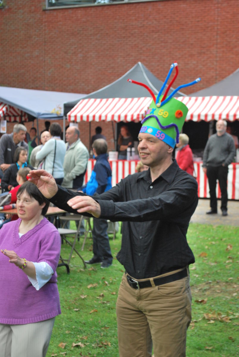 Op het plein werd er volop gedanst door de dansgroep van de dagbesteding en het Dagcentrum. Het koor en de muziekgroep maakten ter ere van de feesten een puzzellied. De Schorre (en een van onze bewoners) zorgden voor een gezellige rock-and-roll namiddag tot ver na 18 uur. Ondertussen waren de met lekkers en moois gevulde werkweek-, akker- en dagcentrumkraam al lang uitverkocht.